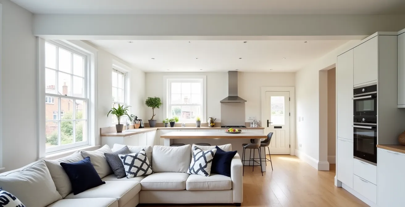 The increased volume of air requires more energy to bring to a comfortable temperature. Heat from radiators rises and can become trapped at the ceiling in a large, double-height or open-plan room, leaving the living area feeling cool. Furthermore, kitchen activities generate significant moisture, and without proper ventilation, this can lead to condensation issues in a larger, cooler space. Industry studies and trade cost guides consistently warn that open plan layouts can increase heating bills by up to 20% if no mitigating measures are taken. This is a significant, ongoing cost that must be factored into the “true cost” of your renovation.